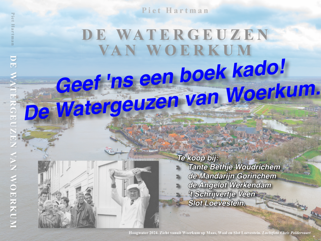 Schilderij kunstschilder Elias Pieter van Bommel (1819-1890) boven. Een schaatsende watergeus op een gaaf ijsvloertje, sinds 1963 niet meer voorgekomen, van trefpunt Maas/Waal/Merwede (de grote rivieren) en Gorinchem (volgens de ANWB de mooiste vesting van Nederland) in het verschiet. Ook zicht op de Woerkumse toren bijgenaamd mosterdpot. En het kasteel-tolhuis waar gravin Jacoba van Beieren een blauwe maandag verbleef, gesloopt in 1852, want de gemeentekas was leeg. De rivieren waren vergiftitigd en de vis dood of gevangen. Dat was het einde van het neoliberalisme en het begin van het roofkapitalisme. Oftewel het slopen van mensen en aarde.